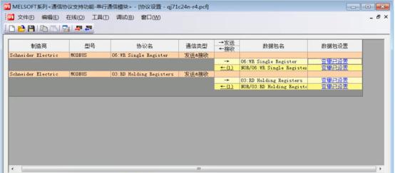 来源:跟我学PLC 一:硬件准备 PLC:三菱Q系列PLC+QJ71C24N-R4模块 变频器:台达VFD-B 终端电阻:110欧姆,主要目的就是为了防止干扰。 接线图如下: 二:台达变频器参数设置 1.00-02;设置成09或者是10,先进行参数初始化。 2.02-00第一频率指令来源设定:设定为04/05都可以,频率由RS-485通信界面操作(RJ-11) 3.02-01第一运转指令来源设定:设定为03/04都可以,运转指令由通信界面操作 4.09-00通讯地址:设定范围01-254,总共可以有254个站号可以设定。站号在一个系统里面保持唯一性。 5.09-01通讯传送速度:设置波特率,根据需求设置。此处要求必须与PLC中参数设置一致。 6.09-04通讯数据格式:根据需求设置。此处要求必须与PLC中参数设置一致。因为是RTU通讯,可以从03、04、05三个选项中挑选。(8:8位数据;E:偶校验;N:无校验;O:奇校验;1:1位停止位) 三:MODBUS RTU 的通信方式 起始位 地址码 功能码 数据区 校验码 停止位 起始位地址码功能码数据区校验码停止位 起始位:保持无输入信号大于等于10ms 地址码:8-bit二进制地址 功能码:8-bit二进制地址 数据区:数据内容:n*8-bit数据,n<=40(数据位内容由通信程序编写,所有信息均需用十六进制数形式发送和接收) 校验码:CRC校验码:16-bit CRC检查码由2个8-bit二进制组合 停止位:保持无输入信号大于等于10ms 通信地址 00H:所有驱动器广播 01H:对第01地址驱动器 0FH:对第15地址驱动器 10H:对第16地址驱动器,以此类推......最大可到254(FFH) 功能码 03H:读出寄存器内容 06H:写入一笔数据至寄存器 08H:回路侦测 10H:写入多笔数据至寄存器 数据内容 四:重要指令讲解 五:PLC操作 1.硬件组态设置 2.按照下图图片设置,注意:传送设置以及通信速度设置一定要与台达变频器中设置一致。 3.各种控制指定:选择通信指定为字节单位,通信控制指定为响应返回禁止。 4.如下图操作,进入到通信协议支持功能软件界面 5.通过添加键选择相应的通信协议库,选择Schneider Electric,型号选择MODBUS,协议名选择03表示读取数据,06表示写入数据 6.添加读取协议 7.协议号1的发送包设置示例 8.正反装停止控制程序示例 ![]() |