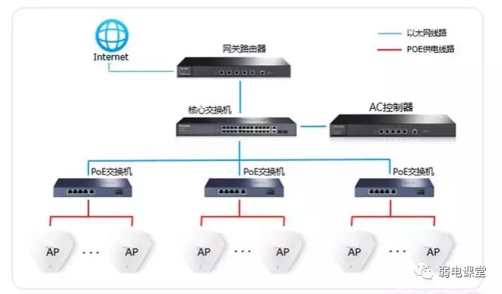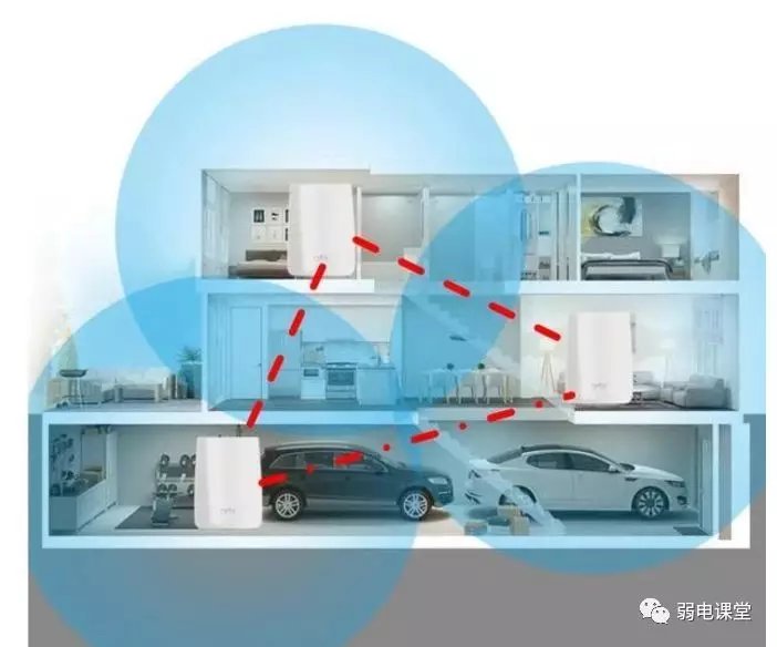 多层楼房实现WiFi无线全覆盖,最合理的方案就是AC+AP组网,还可以实现无线WiFi漫游功能。 组网方式:一楼光纤入户位置作为网络汇聚节点放置一个交换机和AC控制器,各个楼层的弱电箱放置一个POE交换机,楼层根据需求放置吸顶AP,连接到楼层的POE交换机,组网方式如下图所示。 ![]() 存在的问题 题主在问题的附加描述中,说明了整栋楼房没有预留网线,那么AC+AP组网方式就有点“巧妇难为无米之炊”了。在没有布线的情况下,就只能考虑电力猫或者无线组网,而题主在问题中描述“每层有漏电开关”,那么电力猫组网也被排除了,只剩下无线组网方式了。 无线组网介绍 无线组网有两种方式:无线桥接方式和mesh路由器组网。 无线中继方式 传统的无线路由器通过无线桥接的方式组网,多个无线路由器的无线信号中继的方式组网。无线终端和中继信号使用了同样的无线频段,并且容易受到干扰,传输效率低,网速损耗大,不适合题主的需求。 ![]() 分布式路由器 分布式路由器,又称为mesh路由器,由多个节点组成,各个节点自配置自组网,节点之间互相连接,比如3个节点组网,那么一个节点可以与其他两个节点连接,形成一个多连接的组网方式,很大程度上提高了网络的稳定性,实现了“哪里信号不好,放哪里”。 分布式路由器分为双频和三频,双频路由器支持2.4G和5G,节点之间和终端共享5G或者2.4G信道连接,网络性能可能会受到影响;三频路由器支持2.4G和两个5G频段,节点之间通过独立的5G频段连接,干扰少,网速受损最少。 ![]() 以上就是多层楼房组网的常用方式,如果装修时考虑了组网需求,网络布线比较完善,那么AC+AP组网方式时最合适的;如果装修时未考虑预埋网线,同时为了美观,那么mesh路由器组网可能更合适一些,其中三频分布式路由器组网,网速损耗最小,当然成本也最高,根据自己的需求选择合适的组网方式。 |