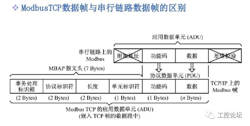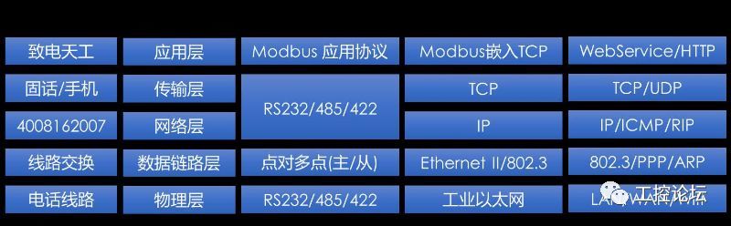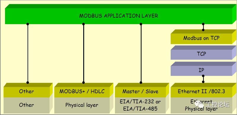 从Modbus开始说现场总线(一) 我在刚接触Modbus的时候,还顺便学会了一个单词De facto ,查了很多词典才知道是“事实上的”,Modbus也确实可以称之为事实上的工业标准。Modbus是Modicon公司(该公司几经收购,最后并入现在的施耐德电气 Schneider Electric,目前Modicon还作为施耐德某些PLC的系列名称)于1979年为使用可编程逻辑控制器(PLC)通信而开发。为了显示楼主学识渊博(爱好八卦),这里猜测一下这个词的由来,方便大家记忆。Modicon大概是Modular Control的缩写,Modbus作为Modicon的第一代通讯总线,理解成Modular bus:“模块化的总线”好像有些牵强,理解为Modicon的通讯总线Modicon Bus大概比较像吧。Modbus能够成为工业领域通信协议的事实标准(De facto standard),楼主擅自猜测,主要的原因大概有两个:一是Modicon做PLC比较(最)早,另外一个,估计是“简单”。 Modbus协议后来还出了升级版本Modbus Plus(MB+)但因为Modicon公司没有公开协议,所以没有流行开来,但仍然在工业现场大量使用。 最早的Modbus是基于串行通讯的(EIA/TIA)RS232/485/422技术,协议简单易用,硬件消耗很少,所有逐步超出PLC通讯的范围,广泛用于各种工业通讯,很多仪器仪表、控制器都支持该协议,配电领域的断流器也加入其中。后来随着工业以太网的普及,Modbus协议也作为应用层的协议搭上了以太网的快车,仍然出现在各种工业和民用现场。对网络通讯协议模型有了解的同行,通过下图可以清楚的了解Modbus协议的位置和作用。 ![]() 下面详细介绍Modbus协议的内容,希望以这个“事实上的工业标准”为例,带您认识五花八门的通讯标准。 我们每天都离不开的通讯网络,或许您并不陌生,但对于其工作原理,大概就只有少数人了解了。我在网上看到一个用订外卖过程来说明国际标准化组织定义的标准化网络模型(OSI)的结构,很贴切,您有空可以看看。 一文简单理解OSI网络模型: https://www.versatek.com/blog/you-wont-believe-what-the-osi-model-and-pizza-have-in-common/ 楼主把几种常见的网络(模型)做了一个比对,方便大家理解。当然其中电话网的内容,并不严谨,仅供参考。 ![]() 从Modbus开始说现场总线(二) Modbus作为一个应用层的协议,最初是为了实现PLC间通讯的,所以基础的协议内容相对简单,传输的数据主要分为四类:离散量(开关量)输入,离散量(开关量,线圈)输出,输入寄存器,保持寄存器。对应电力系统中的术语,分别是:遥信,遥控,遥测,遥调。实际使用中因为一个保持寄存器可以作为十六个开关量使用,而且读和写都支持,大家都习惯通过读/写保持寄存器来搞定一切。 最初的Modbus协议基于RS-232/485链路,有两种编码方式,RTU和ASCII。这也是为什么有时候看到“Modbus RTU”说法的由来,后面我们介绍的帧格式就是RTU格式,ASCII格式已经很少用了。 其实Modbus的通讯格式非常容易理解,主站给从站发送一条报文,大概相当于网友问支付宝: 支付宝(从站地址),内定的锦鲤(数据类型,保持寄存器)第二名(寄存器地址)是多少(读数据,暗号03)啊(校验码)?报文格式如下(16进制): 01 03 00 01 00 01 D5 CA 从机地址 功能码 数据地址 读取数据个数 CRC校验 支付宝回复网友: 支付宝(从站地址),这个嘛(重复读数据功能码),没有(返回数据长度,二),是0017这厮(返回数据),真没有(校验码): 01 03 02 0017 F8 4A 从机地址 功能码 数据字节个数 两个字节数据 CRC校验 这样,Modbus主机就完成了一次对从机数据的读操作,是不是很简单?最常用的两个功能码就是上面介绍的0x03(读连续多个保持寄存器)和0x10(十进制16,写多个保持寄存器),其他的功能码,基本类似,无非是类型(离散量,寄存器,…)数量(单个,连续多个)的不同组合。当然还少不了错误处理等细节,详细内容见参考文献。 寄存器地址是从0000开始的,对应于Modicon(施耐德)PLC中的40001,如果是寄存器地址从0001开始,并直接对应寄存器地址40001,Modbus RTU协议就有了一个别名JBUS,可以理解为JBUS是Modbus的一个常用功能子集。另外,有的厂商在返回数据时,数据长度不是按字节计算,而是按字计算,也无法和标准Modbus协议兼容。 把Modbus报文去掉地址和CRC校验码嵌入到以太网的数据帧中,就成了TCP-Modbus,如下图。这样串行设备(我们前面讲的断路器,多数都是通过附件成为一个串行设备)就可以很方便的接入以太网了,当然这个“嵌入”的过程,是由网关完成的。 ![]() Modbus协议的主要内容就介绍完了,我们会发现,作为一个应用层协议,Modbus并没有定义数据的格式和含义。例如,读一个保持寄存器的值,我们得到一个16位的数,至于这个数是每一位代表一个开关量的状态,还是一个无符号整数,或者是32位浮点数的高字节或者低字节,就要靠通讯双方自行定义了。所以实现Modbus通讯的很大一部分工作就是按照双方的通讯数据表逐个处理。 |