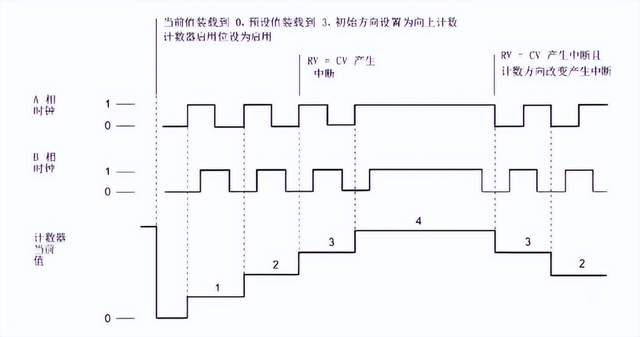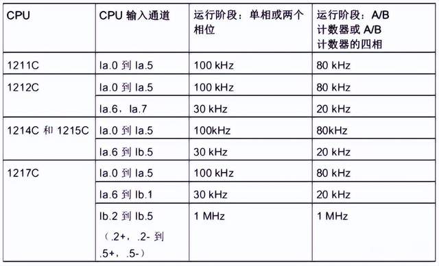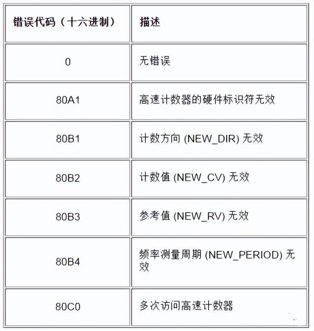 如200SMART的高速计数、编码器基础、高速计数常见问题等;今天我们主要分享关于1200系列的高速计数内容。 一、 高速计数的最大频率 CPU 和 SB 输入通道可以支持过程信号中的最大脉冲速率 二、高速计数器的工作模式 单相: 单相计数指的是只有一路脉冲信号输入到PLC,计数器所记录脉冲数体现为加还是减,取决于方向信号,由方向信号的ON和OFF进行决定。方向信号可选择内部控制也可以选择外部输入 两相位: 双相计数具有两路脉冲信号,一路脉冲为增计数脉冲,一路在减计数脉冲,当增脉冲信号输入时,计数器当前值往上加;当减计数脉冲输入时,计数器的当前值往下减 A/B计数器 A/B相计数,在计数时,两路脉冲同时输入到CPU中,当A相脉冲超前B相脉冲90°时,计数当前值往上加;当A相脉冲滞后B相脉冲90°时,计数当前值往下减 A/B计数器四倍频: A/B计数器四倍频计数方式与A/B计数器计数方式一样,主要不同在于每个沿信号的产生时,计数的当前值均会发生变化 三、计数类型 1200系列PLC提供4种计数类型:计数、周期、频率、运动控制 计数:计算脉冲次数并根据方向控制的状态递增或递减计数值。外部 I/O可在指定事件上重置计数、取消计数、启动当前值捕获及产生单相。输出值为当前计 数值且该计数值在发生捕获事件时产生。当选择为计数类型时,需要设置计数器的工作模式和计数方向,以及初始化计数方向、初始值及参考值等 周期:会在指定的时间周期内计算输入脉冲的次数。返回脉冲的计数及持续时间(单 位为:纳秒)。会在频率测量周期指定的时间周期结束后,捕获并计算值。使用周期功能时,需要设置频率测量周期,频率周期可选择为1S/0.1S/0.001S 频率:测量输入脉冲和持续时间,然后计算出脉冲的频率。程序会返回一个有符号的 双精度整数的频率(单位为Hz)。如果计数方向向下,该值为负。会在频率测量周期指定的时间周期结束时,捕 获并计算值。 运动控制:用于运动控制计数对象,不适用于 HSC 指令。主要用于运动控制实现闭环控制时使用 四、高速计数的寻址 CPU 将每个高速计数器的测量值,存储在输入过程映像区内,数据类型为 32 位双整型有符号数,用户可以在设备组态中修改这些存储地址,在程序中可直接访问这些地址,但由于过程映像区受扫描周期影响,读取到的值并不是当前时刻的实际值,在一个扫描周期内,此数值不会发生变化,但计数器中的实际值有可能会在一个周期内变化,用户无法读到此变化。 我们可通过读取外设地址的方式,读取到当前时刻的实际值。以 ID1000 为例,其外设地址为 “ID1000:P”下表所示为高速计数器寻址列表。 高速计数器寻址 五、高速计数指令说明 高速计数器控制指令CTRL_HSC 管脚说明: STATUS 错误代码: CTRL_HSC_EXT:高速计数器扩展指令 CTRL_HSC_EXT: 高速计数器扩展指令主要针对固件版本为V4.2以上的CPU使用,增加了门功能、同步功能、比较功能、捕捉功能等 管脚定义: |