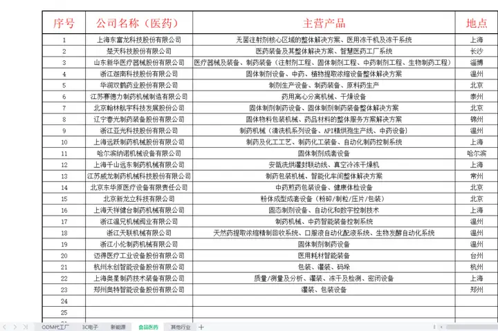 医疗自动化行业楚天科技,新华医疗,华润双鹤药业,上海东富龙千山制药。