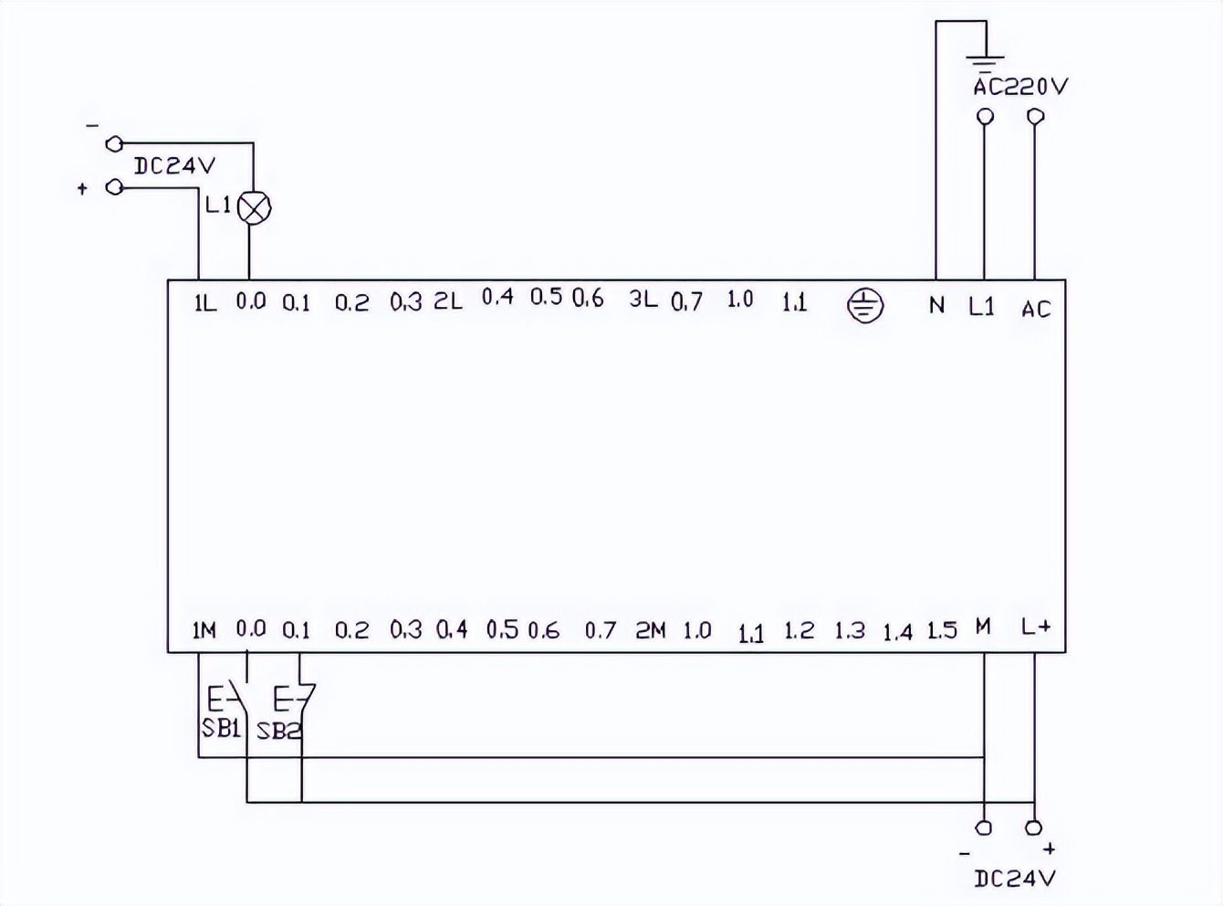 一、小车往返运动 用S7-200实现小车往返的自动控制 ,控制过程为按下启动按钮 ,小车从左边往右边(右边往左边运动) 当运动到右边(左边)碰到右边(左边)的行程开关后 小车自动做返回运动,当碰到另一边的行程开关后又做返回运动 。如此的往返运动,直到当按下停车按钮后小车停止运动。 I/O分配表 梯形图程序 PLC接线图 程序调试及结果分析 ▲控制平台操作面板 当按下SB2即i0.0(鼠标点击i0.0f)接通后,Q0.0接通,小车右行(即指示 灯 Q0.0 亮)。当小车运行碰到右限位开关SQ2即i0.4(用鼠标点击i0.4f,模拟SQ2被压下)接通,此时小车左行(指示灯Q0.0灭,指示灯Q0.1亮)。 当运行到左边碰到左限位SQ1即i0.3(鼠标点击i0.3f)接通,此时小车又往右运行(指示灯Q0.1灭,指示灯Q0.0 亮)。如此往返运动下去直到按下SB1即i0.2(鼠标点i0.2f)接通,小车停止运行。 附: 二、闪光电路 当按下启动按钮后,要求在两秒钟内有一秒亮有一秒灭,如此反复,灯一闪一闪 发光。 I/O分配表 梯形图程序 PLC接线图 程序调试及结果分析 把编写好的程序下载到西门子s7-200PLC中进行调试。观察运行结果和实验要求 是否相同。通过在线控制面板进行调试,当按下在线控制面板上的I0.0f(即 I0.0 接通)此时Q0.0有输出,Q0.0所接负载灯就亮,同时启动定时器T37开始计时,。 当计时一秒后因T37动作,其常闭触点断开,所以Q0.0无输出,所接负载灯灭。灯灭的同时启动定时器 T38,T38 计时一秒后,把串联在定时器T37的常闭触点 断开,所以T37复位,T37常闭触点恢复常闭。此时Q0.0 又有输出, 所接负载灯又亮。 这样,输出Q0.0上所接的负载灯以接通一秒,断开一秒频率不停的闪烁,直到按下在线控制面板上的 I0.1f(即I0.1接通),闪光电路不在继续工作。若想改变灯闪烁的频率只要改变定时器的时间就能够达到改变要求。 三、星三角降压启动 利用西门子S7-200的PLC实现星三角接法的降压启动。 星三角降压启动的电路图与控制图 流程框架图如下 I/O分配表 梯形图程序 PLC接线图 程序调试及结果分析 把编写好的程序下载都西门子S7-200的PLC中进行调试,下载好后我们打开在线控制面板进行调试,看运行结果是否符合要求。首先把控制面板上的i0.2f置位为按钮按下去,即i0.2 接通,表示断路器QF合上。 按下启动按钮i0.0f(SB2)即i0.0接通此时电动机星形启动,Q0.0和Q0.1有输出,实验接线图中表示这两个的灯L1和L2都亮同时驱动时间计数器,当计时器计到10S时切换为三角型启动,此时Q0.1无输出,Q0.2有输出,则此时Q0.0和Q0.2 有输出,电机三角星运行。 接线面板上的L 1和L3灯亮。按下在线面板上的i0.1f后(i0.1接通)此时电动机停止运行。所以的输出点都无输出。 四、彩灯控制 利用PLC的Q0.0到Q0.7八个输出端控制八个彩灯,使其每隔一秒亮一个并循环。当接通I0.0后所有的灯都熄灭。当接通I0.1后又重新从Q0.0开始循环。 I/O分配表 梯形图程序 PLC接线图 程序调试及结果分析 把编写好的程序下载都PLC中进行调试,下载好后我们打开在线控制面板进行调试,看运行结果是否符合要求。 PLC一上电后sm0.0一直保持接通。所以t37进行延时计时,延时到后启动t38计时,t38计时到后t38常闭触点断开所以t37断开计时,t37常开触点恢复为常开所以t38也断开计时。此时t38的常闭触点恢复为常闭所以t37又重新计时,同时计数器C0开始计数一次。 如此的反复计数。当计数为1时,Q0.0接通。计数器计数为2时Q0.1接通……如此下去当计数器计数到8时Q0.7接通。当计数器计到9时计数器C0清零。当按下在线控制面板上的I0.0f(即I0.0)接通,此时计数器,和Q0.0~Q0.7都清零,即没有一个灯亮。 当按下在线控制面板上的I0.1f(即I0.1接通)此时计数器开始重新计数,灯又从Q0.0开始重新一个接一个的往下亮。 五、比较指令 对进出仓库的货物进行记录。仓库最多可放6000箱货物,货物多于1000箱灯L1亮,多于 5000箱时灯L2亮。 I/O分配表 梯形图程序 程序调试及结果分析 把程序下载到S7-200的PLC中进行调试。在下载的之前我们先把程序中的数字进行缩小处理,以便在实验中我们能够更好的更快的观看到实验结果。我们把L1的灯亮的时候设置为5。把L 2灯亮我们设置为10。这样我们就能够更快的看到实验结果。 当按下在线控制面板上的I0.0f的时候即I0.0接通,表示有货物进去。当我们点击在线控制面板上的I0.0f五次后,此时计时器中的计数值为5,(即表示仓库中已经有1000箱物品了)则灯L1要亮,即Q0.0有输出。 当继续点击I0.0f后点 击有十次后此时计数器的计数值位10(即表示仓库中有5000个物品),此时灯L2也亮即Q0.1有输出当继续点击在线控制面板上的I0.0f。计数器中的计数值就继续往上增加。当按下在线控制面板上的I0.1f后计数器就开始往下减。点击一次,计数器中的计数值就减少一次。 当计数器中的值小于10时即表示仓库中的物品少有5000箱,此时灯L2灭(即Q0.1没有输出)当继续点击I0.1f时计数器 中的计数值继续减少,当减少到小于5次时。表示仓库中的物品少于1000,此时灯L1灭。Q0.0就没有输出。当按下在线控制面板上的I0.2f时计数器清零。L1和L2都不亮,(即Q0.和Q0.1都没有输出)。 六、8个彩灯移位控制 用IO导线控制接在Q0.0到Q0.7上的八个彩灯循环移位,用t37定时,每0.5S移位一位,首次扫描时给Q0.0到Q0.7置初值,让Q0.0和Q0.2先有输出。用I0.1来控制彩灯位移的方向。 I/O分配表 梯形图编程 PLC接线图 程序调试及结果分析 把程序下载到西门子S7—200的PLC中进行