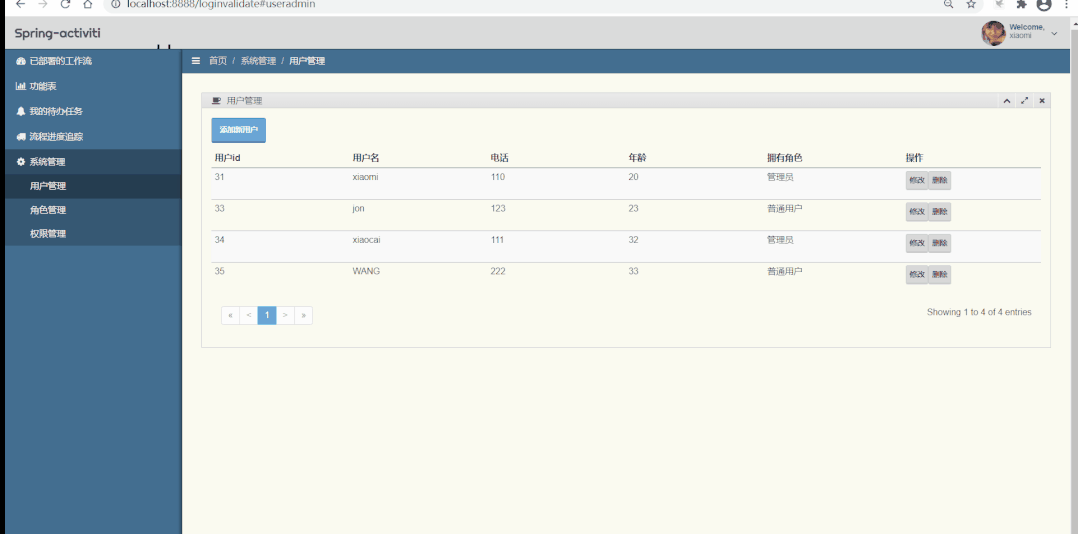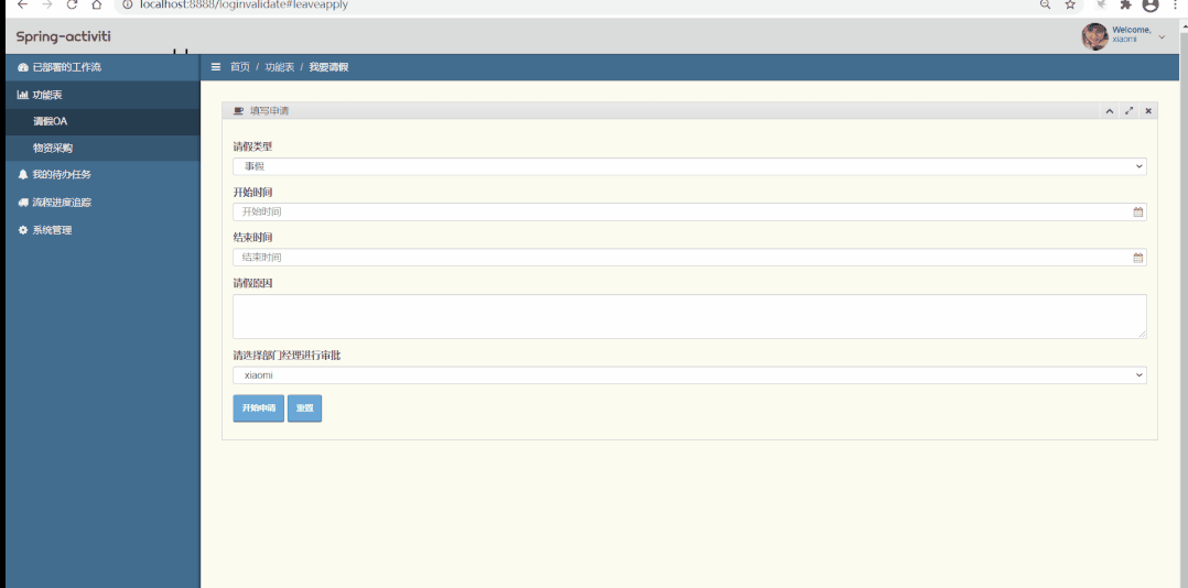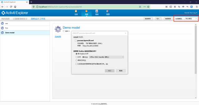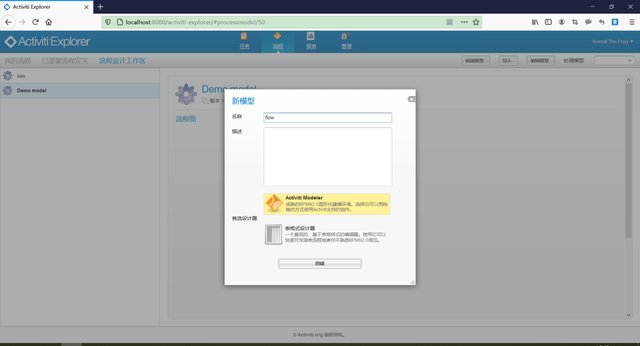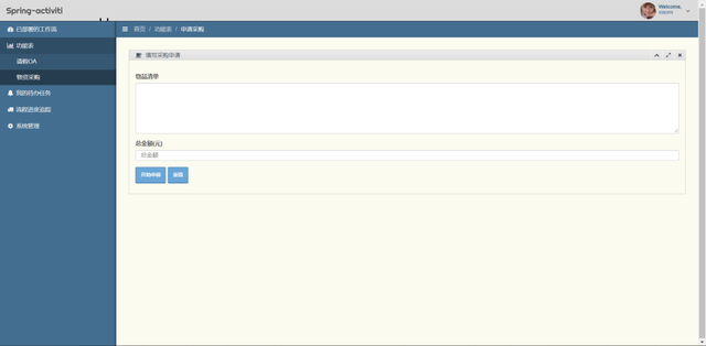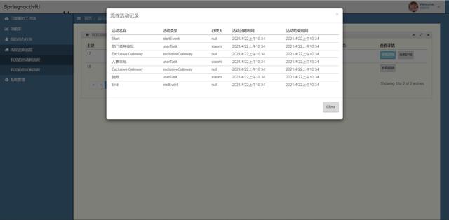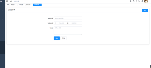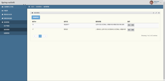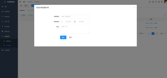 1、Spring-boot-activiti在常用的ERP系统、OA系统的开发中,工作流引擎是一个必不可少的工具。本项目旨在基于Spring boot这一平台,整合业界流行的工作流引擎Activiti,并建立了两个完整的工作流进行演示:请假OA和采购流程。 其中包含的内容如下: 1. 不采用activiti自带的用户、角色功能,因为过于简单,转而自行实现一个用户、角色、权限的三级结构,用户到角色,角色到权限均为多对多映射,持久层框架使用mybatis的collection和association标签嵌套实现; 2. 使用默认的用户登录后(用户名xiaomi,密码1234),可看到已部署好的两个流程,请假OA和采购流程,其中,请假OA包含了用户任务、排他网关、起始结束事件,较为简单;采购流程除此之外,还使用了异常结束事件、子流程和边界事件的使用; 3. 两个流程均包含了待办任务签收、运行流程进度追踪、已运行完流程历史记录查看的功能,运行流程进度在流程图中以红色标注;汪 4. 使用时,将流程数据和业务数据相分离,使用业务号(businessKey)建立关联流程数据和业务数据的桥梁,使其相互可以访问,业务数据的主键即为业务号; 5. 本系统所有表单均使用普通表单,而不是activiti的动态表单和外置表单,这样做是为了分表存放业务数据和流程数据; 6. 系统前端采用基于Bootstrap的模板devoops建立。 7. 起始页面入口: mvn clean install 8. swagger入口: 9.新增流程图设计器,将activiti-explorer.war放入Tomcat8.5的webapps目录下,启动Tomcat,访问 点击流程->流程设计工作区->新建模型,填入模型名称,点击创建按钮即可开始流程图设计: 设计完后,可以导出源文件: 10.新增动态菜单权限,通过给不同用户分配不同的角色,使他们看到不同的菜单。 11.请假流程直接分配到具体审批人,只有指定的审批人才能审批。采购流程按照候选者组进行任务签收,只要能拥有相关菜单的权限即可审批。 12.效果图: 2、RuoYi-vue 4.x + flowable 基 RuoYi-vue 4.x + flowable 6.5 的工作流管理 ~ 一直想学习和入门flowable, 期间大量面向百度编程解决了很多问题, 感谢 flowable初级使用手册 ,零基础学习很值得一看。最后感谢 若依框架 ,快速集成开发爽到飞起 ~~~ 演示地址 访问链接:http://139.155.16.243/ 使用文档: