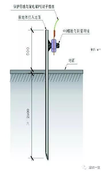 1.每一接地装置的 接地线应采用2根及以上导体,在不同 点与接地体做电气连接。垂直接地体宜采用2.5m长角钢、钢管或光面圆钢,不得采用螺纹钢;垂直接地体的间距 一般不小于5m,接地体顶面埋深不应小于0.5m。