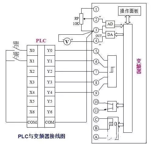 PLC在以模拟量方式控制变频器的模拟量输入端子时,也可同时用开关量方式控制变频器的开关量输入端子。