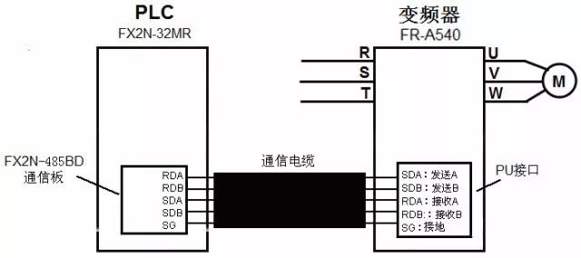 PLC以开关量方式控制变频器时,需要占用较多的输出端子去连接变频器相应功能的输入端子,才能对变频器进行正转、反转和停止等控制;PLC以模拟量方式控制变频器时,需要使用DA模块才能对变频器进行频率调速控制。如果PLC以RS485通信方式控制变频器,只需一根RS485通信电缆(内含5根芯线),直接将各种控制和调频命令送给变频器,变频器根据PLC通过RS485通信电缆送来的指令就能执行相应的功能控制。