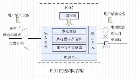 但是PLC的涵盖范围又比变频器大,还可以用来控制更多的东西,应用领域更广,性能更强大,当然PLC的控制精度也更大。变频器无法进行编程,改变电源的频率、电压等参数,它的输出频率可以设为固定值,也可以由PLC动态控制。 plc是可以编程序的,用来控制电气元件或完成功能、通信等任务。 PLC与变频器之间通信需要遵循通用的串行接口协议(USS),按照串行总线的主从通信原理来确定访问的方法。总线上可以连接一个主站和最多31个从站,主站根据通信报文中的地址字符来选择要传输数据的从站,在主站没有要求它进行通信时,从站本身不能首先发送数据,各个从站之间也不能直接进行信息的传输。 PLC基本结构图PLC可编程控制器的存储器可以分为系统程序存储器、用户程序存储器及工作数据存储器等三种。