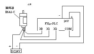 图3为FX2N型PLC与OMRON的E6A2-C系列旋转编码器的接口示意图。