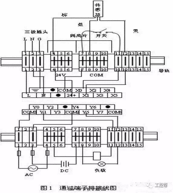 在工程实际中,一般输入输出设备不可能都直接与PLC连接。而且PLC的多个输出端子公用一个COM端,也不可能在一个端子上连接几根甚至十几根导线,所以,必须通过端子排连接。