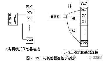 图示传感器为NPN型,是常用的形式。对于PNP型传感器与PLC连接,不能照搬这种连接,要参考相应的资料。