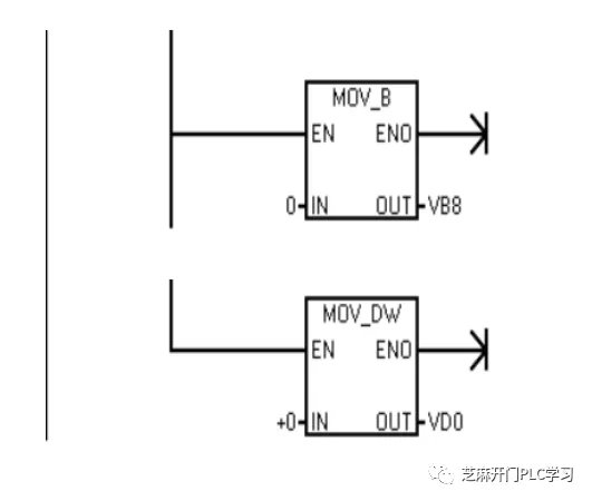 在PLC运行的第一个扫描周期,将用于记录累加数据次数和累加数据的中间变量VB8和VD0置0