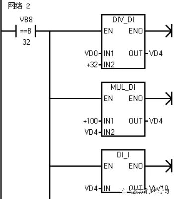 将平均值转换成字数据,送入字VW10中。VW10中的数据就是电机速度值。之所以转换,是因为在程序中一般要求以字的概念存在。
