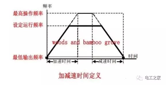 注意事项: 1, 对于有些变频器加减速时间的单位是可以更改的。如台达的VFD-B+【加减速时间的单位,参数号:01-23】,不要随意更改。 2, 一些对启停要求不高;电机负载惯量很大时(如风机、搅拌机),为省去在调试中反复更改设置值繁琐操作;降低日后由此因素引起变频器过流、过压造成损坏率。建议不要对加减速时间更改设置,让其自行启动、停车。