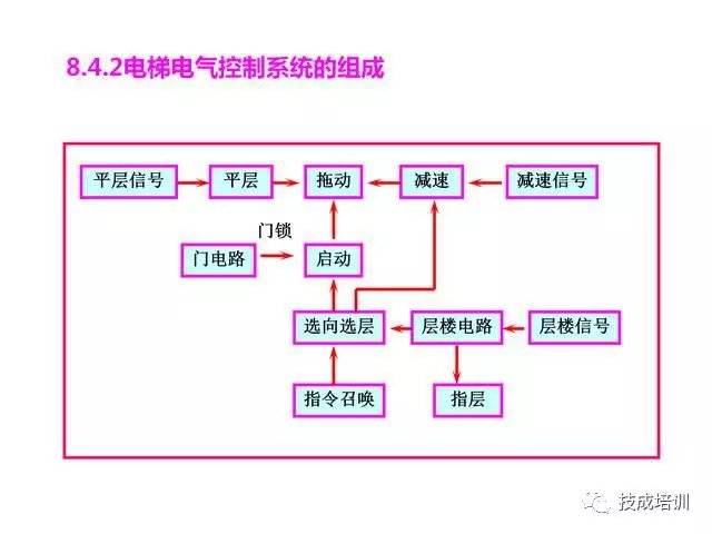 1. 电梯基本原理 电梯是机械、电气紧密结合的大型机电产品。主要由机房、井道、轿厢、门系统和电气控制系统组成。 井道中安装有导轨,轿厢和对重由曳[ye]引钢丝绳连接,曳引钢丝绳挂在曳引轮上,曳引轮由曳引电动机拖动。轿厢和对重都装有各自的导靴,导靴卡在导轨上。曳引轮运转带动轿厢和对重沿各自导轨做上下相对运动,轿厢上升,对重下降。这样可通过控制曳引电动机来控制轿厢的启动、加速、运行、减速、平层停车,实现对电梯运行的控制。