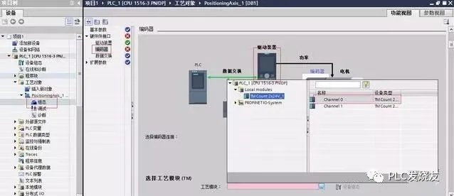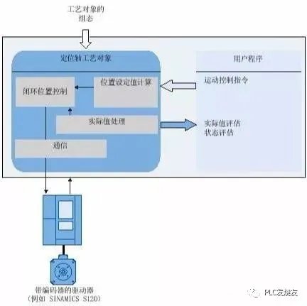 本文中的实例项目使用 CPU1516-3PN/DP 通过 PN 通讯控制 G120 变频器,通过安装在电机后面的编码器连接到工艺模块 TM Count24V 作为位置反馈。 轴定位功能图