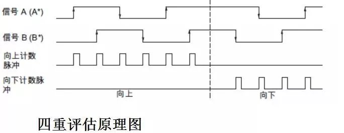 5、增量信号多重评估能否提高计数频率对于增量信号,可以组态多重评估模式,包括双重评估和四重评估。四重评估是指同时对信号 A 和B 的正跳沿和负跳沿进行判断,进而得到计数值,如图4-1所示。对于四重评估的模式,因为对一个脉冲进行了四倍的处理(四次评估),所以读到的计数值是实际输入脉冲数的四倍,通过对信号的多重评估可以提高测量的分辨率。