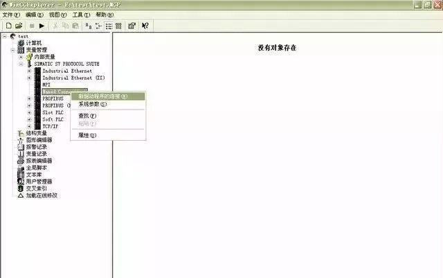 图4设置计算机IP地址5. 添加新的驱动程序和设置系统参数,打开新创建的工程“test”,在项目管理栏里选择“变量管理”,单击右键选择“添加新的驱动程序”,如图5所示。