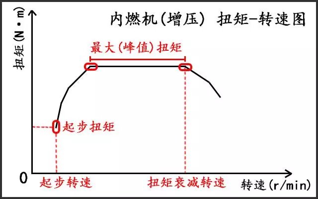 内燃机与电动机最大的不同在于内燃机起步只能输出不大的扭矩,随着转速的上升扭矩也逐渐增加,它们成一个正比关系,它是在某个特定的转速下才达到的。现在有涡轮增压技术后,输出扭矩上升至最大值时在一定转速范围会保持恒定输出,只有当转速进一步升高时扭矩才会出现衰减。 所以说: