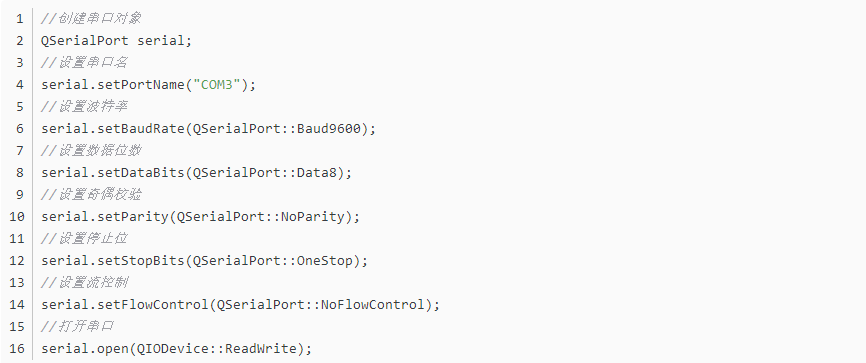 最近在学习嵌入式,而上位机又是一个不可缺少的工具,于是就开始接触QT,学习编写上位机。刚开始的时候什么都不懂,发现《Qt 学习之路 2》有比较好的入门教程。学习了前面部分,对QT有了大概的了解后,就开始在网上寻找串口编程的方法。通过好几天的学习,终于写出了一个用于串口通信的上位机。下面开始介绍串口类的使用。 首先,QT5是自带QSerialPort这个类的,使用时需要在pro文件里面添加一行: 然后直接引用头文件就可以了。 在QT5中,串口通信是借助一个QSerialPort的对象来实现的,在设置QSerialPort对象对串口的名称、波特率、数据位、校验位、停止位等参数后,方能对串口进行读写。下面,我总结了一下借助QSerailPort对串口进行设置、打开、读、写和关闭的过程。 一、设置和打开串口 以上代码是QSerialPort对象的设置示例,作用是: 设置串口名为 COM3 设置波特率为9600 设置数据位为8位 设置没有奇偶校验位 设置停止位为1位 以可读写的方式打开串口 设置完这些就能进行读写操作了。如果遇到不理解的地方,可以选择QT的类或函数,然后按F1查阅手册。举个例子,如果我们想查看QSerialPort的其它的属性,可以选择QSerialPort的类名或成员函数,然后按F1。