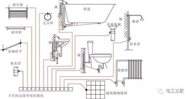 4.触电保护:1999年6月开始实行的新的建设部《住宅设计规范》中,有一项不太引人瞩目的条款:城镇新建住宅中的卫生间宜做等电位连接。专家通俗的解释是:浴室等电位连接就是保护你不会在洗澡的时候被电着。电热水器、坐浴盆、电热墙,浴霸以及传统的电灯……都有漏电的危险,电气设备外壳虽然与PE线联结,当仍可能会出现足以引起伤害的电位,发生短路、绝缘老化、中性点偏移或外界雷电而导致浴室出现危险电位差时,人受到电击的可能性非常大,倘若人本身有心脑方面疾病,后果更严重。等电位联结使电气设备外壳与楼板墙壁电位相等,可以极大地避免电击的伤害,其原理类似于站在高压线上的鸟,因身体部位间没有电位差而不会被电击。