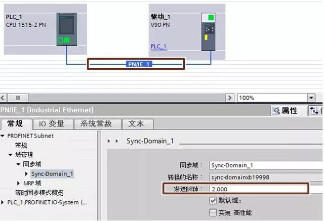 5. 在网络视图中配置PROFINET IRT通信,需要注意当前V90 PN的通信时间最短为2ms