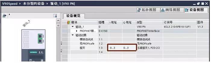 参数保存后需重启驱动器才能生效。 方法一 使用标准报文2和工艺对象 V90 PN与PLC采用PROFINET RT通信方式并使用报文2,项目步骤如下: 1. 创建项目后,添加新设备S7-1500 PLC 2. 在网络视图中添加V90 PN设备(本例使用HSP组态)
