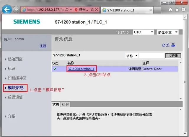 4.登录授权用户,点击“模块信息”,然后点击相应PLC站点名称,即可查看PLC 站点信息。