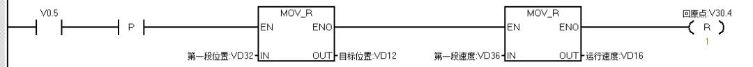 当当前位置和第一段A点位置相等时,把B点位置和速递传送至目标值地址内,延时一定时间后,运行至B点,当到达B点后把C点的位置和速度传送至目标位置地址