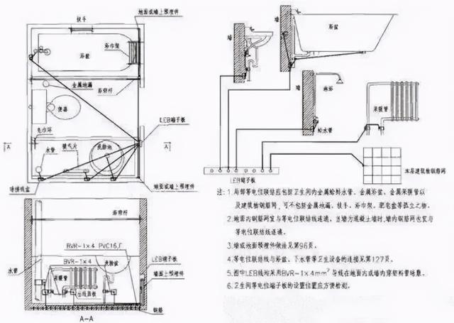 一般在浴室都会预留局部等电位端子板,大家在装修时可以参考下图,做好局部等电位联结: