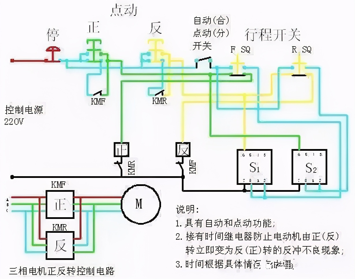 这些行程开关、转换开关的触点的不同工作状态单凭看电路图难以搞清楚,必须结合设备说明书、电器元件明细表,明确该行程开关、转换开关的用途,操纵行程开关的机械联动机构,触点在不同的闭合或断开状态下电路的工作状态等。