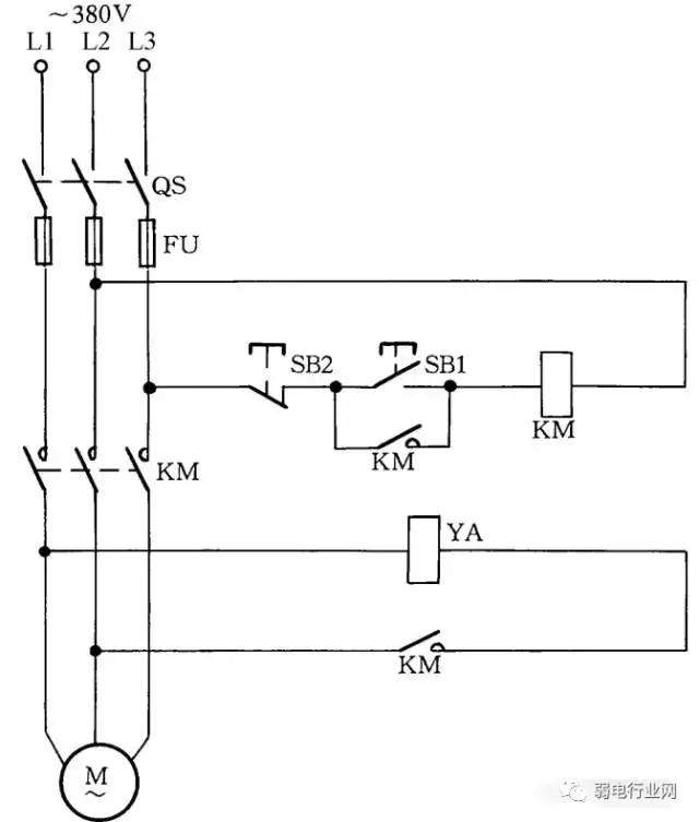 线路中YA为制动电磁铁,在通电后,制动解除;在断电后,YA立即制动。