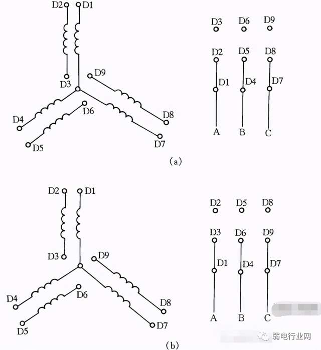 图8所示是2Y/2Y电动机双速定子线组的引出线接线方法。