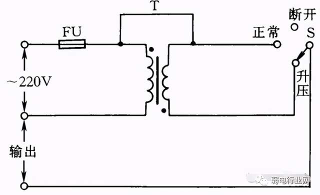在某些地方,因网路电压长期较低或者是由于夜间用电量减少,网路电压升高,一些电器不能正常工作或损坏,利用行灯变压器升压或降压可满足需要,见图29。