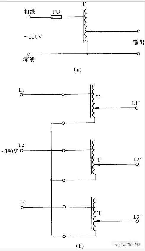 单相自耦调压器在工厂等应用极为广泛。其接线线路如图35(a)所示。