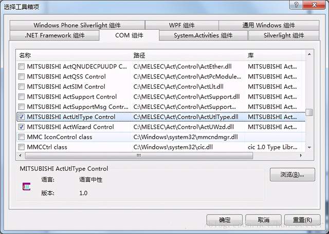 选择com组件选项卡,在选择界面中勾选你所需要的控件