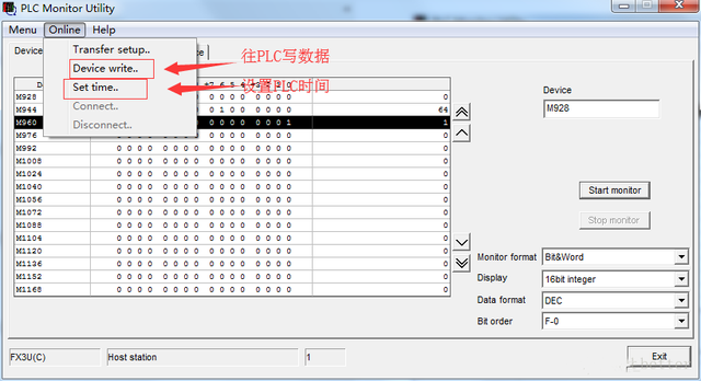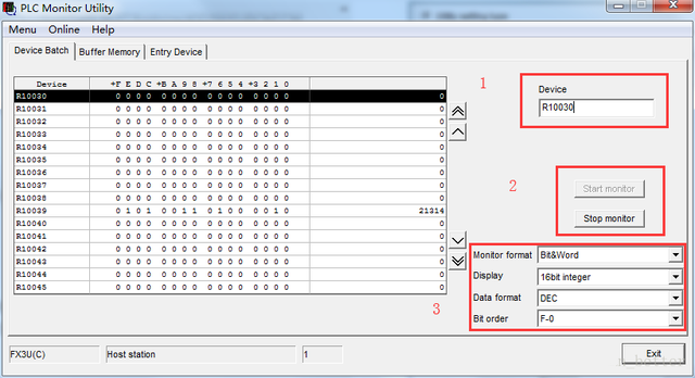 PS:1:plc地址,2:开始结束监控,3:更改监控方式