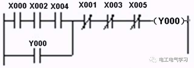 停止控制。在甲、乙、丙三个地点一起点击SB2、SB4、SB6中的某个停止按钮时→线圈Y000失电→Y000常开自锁触点断开,Y0端子内部硬触点断开→Y000常开自锁触点断开使Y000线圈供电切断,Y0端子的内部硬触点断开使接触器线圈KM失电→主电路中的KM主触点断开,电动机失电停转。