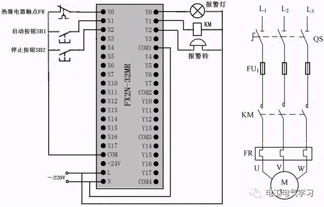 过载报警控制的PLC线路与梯形图