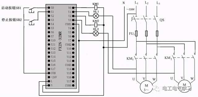 其PLC接线图与上面类似。