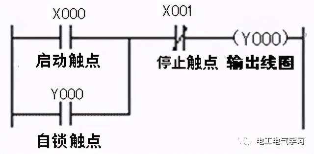起动、自锁和停止控制的PLC线路与梯形图