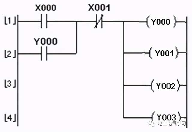 多重输出控制的PLC线路与梯形图