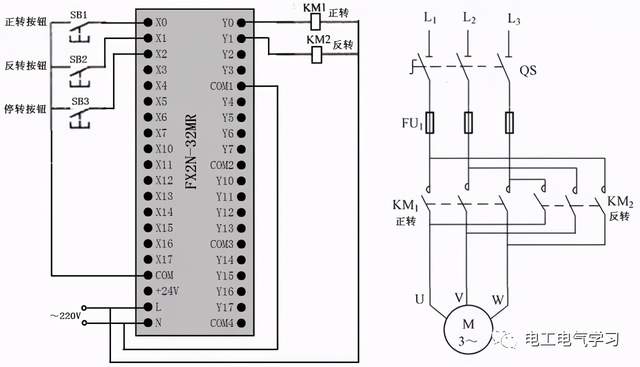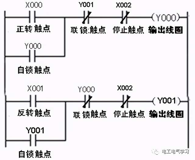 正、反转联锁控制的PLC线路与梯形图