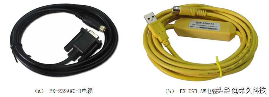 PLC与计算机连接需要用到通信电缆,常用电缆有两种:一种是FX-232AWC-H(简称SC09)电缆,如图所示,该电缆含有RS-232C/RS-422转换器;另一种是FX-USB-AW(又称USB-SC09-FX)电缆,如图所示,该电缆含有USB/RS-422转换器。