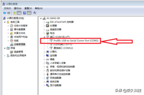 在选用PLC编程电缆时,先查看计算机是否具有COM口(又称RS-232C接口),因为现在很多计算机已经取消了这种接口,如果计算机有COM接口,可选用FX-232AWC-H电缆连接PLC和计算机。在连接时,将电缆的COM头插入计算机的COM接口,电缆另一端圆形插头插入PLC的编程口内。 如果计算机没有COM接口,可选用FX-USB-AW电缆将计算机与PLC连接起来。在连接时,将电缆的USB头插入计算机的USB接口,电缆另一端插入PLC的编程口内。 将FX-USB-AW电缆插到计算机USB接口时,还需要在计算机中安装这条电缆佩戴的驱动程序。驱动程序安装完成后,在计算机中选择“设备管理器”,弹出设备管理器窗口,如图所示,展开其中的“端口(COM和LPT)”,从中可以看到一个虚拟的COM端口,图中为COM3,记住该编号,在works2软件进行通信参数设置时要用到。