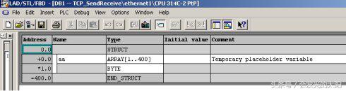 b. CPU314C-2DP 的DB1中发送出去的数据: