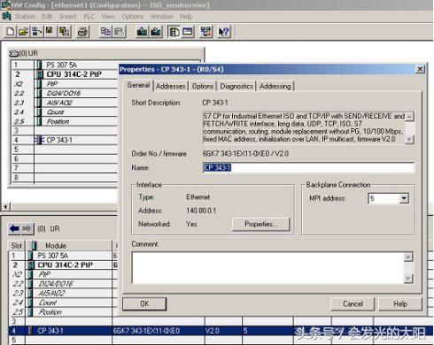 设置CP343-1、CP343-IT模块的参数,建立一个以太网,MPI、IP地址: