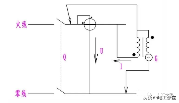 倒表时先把电表的电源侧开关Q拉开,或使用其他办法使电表脱离市电电源,然后把手摇发电机的电压输出端和电流输出端分别接入电能表的电压回路和电流回路,同时甩掉用户负载,在手摇发电机输出的电压、电流作用下使电能表快速倒转。