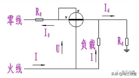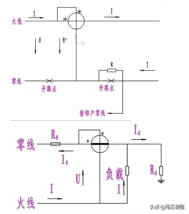 由于零线接地分流,电表比正常接线时少计,实际电量等于计量电量乘以(Rd+R0)/Rd