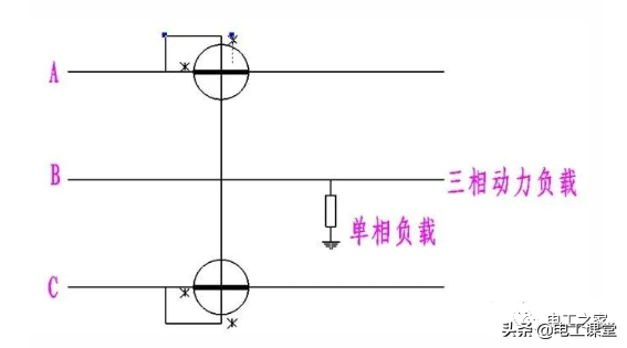 由图可以看出,这时电表记录的仍是三相动力负载的电能,而在B相接入的单相负载却漏记了。 03 移相法偷电
