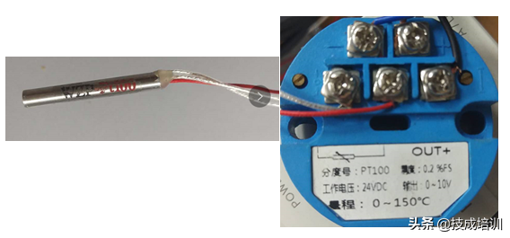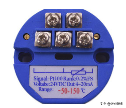 下图是我们另外一种温度变送器,它能感应到-50°~+150°的温度范围,输出的是4~20ma的电流。